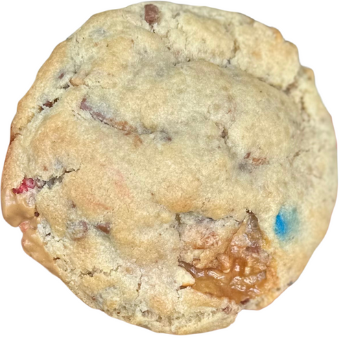 Stuffed cookies are our bread and butter! We prepare each dough in-house and weigh every cookie to 145 grams (just over 5 ounces!) before adding the 'stuffing', which are also typically made from scratch and baked in-house (except for the obviously store bought fillings, such as the Reese Cup). These cookies are soft and doughy, and packed with flavour!